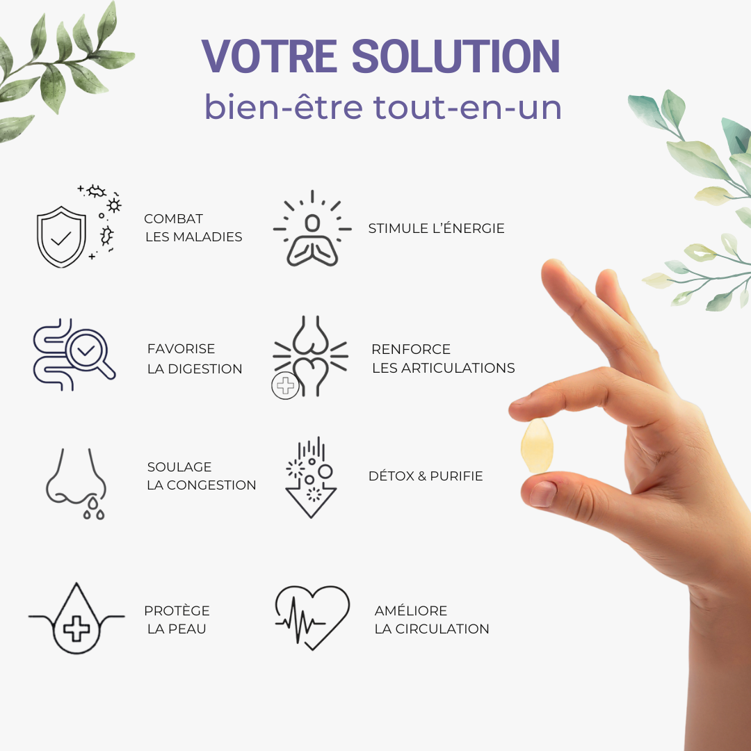 lle aide à l’équilibre intestinal, soutient la peau, contribue au confort respiratoire, renforce le système immunitaire et agit comme un antibiotique naturel grâce à ses puissants composés végétaux.
