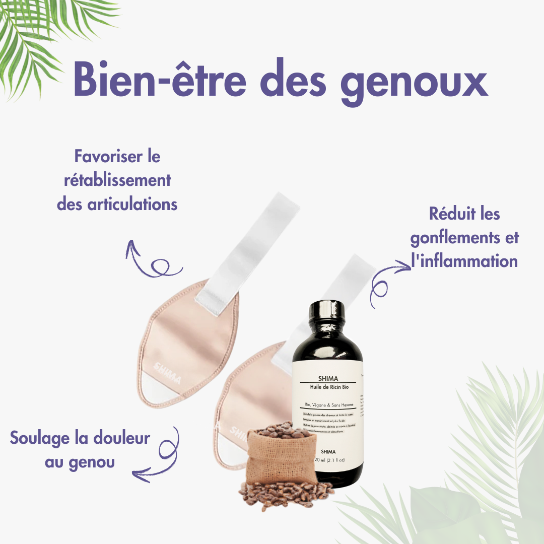 Notre Kit est essentiel car il conserve la chaleur en retenant celle de votre corps à l'intérieur. Cela permet à l'huile de ricin de pénétrer profondément dans votre peau, vous offrant ainsi tous ses bienfaits ! Sans notre Kit Bien-Être, l'huile ne s'absorbe que superficiellement, offrant peu ou pas de bénéfices.