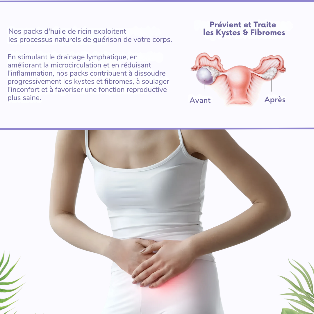 "Adoptez la solution idéale pour revitaliser votre corps avec notre Kit de Bien-Être Hépatique à l'huile de ricin. Il améliore la circulation, stimule le drainage lymphatique, équilibre les hormones et apaise les douleurs, tout en soutenant la santé de votre foie."